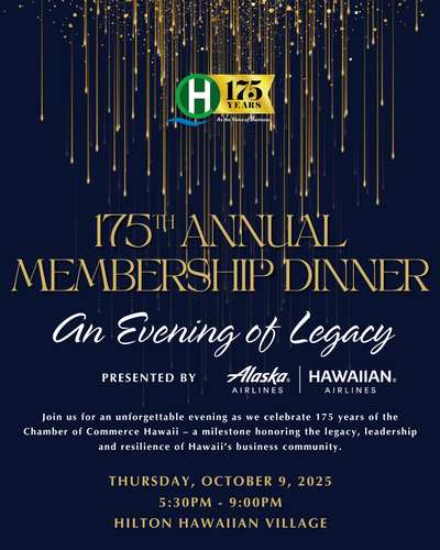 Join us as we commemorate the Chamber of Commerce Hawaii’s 175th anniversary—a historic milestone honoring our enduring legacy of advocacy, innovation, and collaboration since 1850.