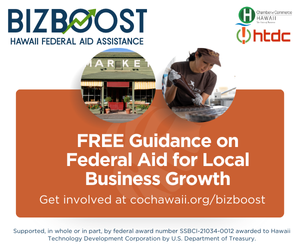 We’re proud to launch the BizBoost Federal Aid Assistance Program, in partnership with Hawaii Technology Development Corporation, a new initiative designed to help Hawaii small businesses access and maximize available federal funding opportunities. Whether you’re navigating disaster relief, infrastructure grants, or business development aid, we’re here to guide you by providing expert support.