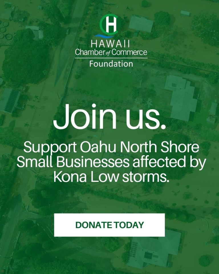 The Hawaii Chamber of Commerce Foundation is raising funds to assist the small businesses on the North Shore of Oahu affected by the recent Kona Low storms. Devastating floodwaters swept through the area’s communities, leaving businesses and homes in ruin.