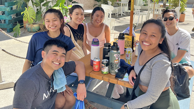 The most recent event at Aloha Beer Company—a sold-out success—was the third in a series geared toward alumni who’ve graduated in the past 10 years. Each has seen a larger interest and attendance. The inaugural gathering was themed “Sweat and Sip,” which hosted 30 for an energizing workout at Orangetheory Fitness, followed by a hard-earned pau hana at Village Bottle Shop and Tasting Room.
